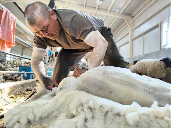 凭借多年练就的熟练技能,叶尔肯别克·莫合买提汗在每年剪毛季都能凭借手艺实现稳定增收。“我每天能剪80只羊,每只羊剪毛费用8元,整个剪毛季下来,能挣9000元,靠着这门手艺增加家庭收入,日子过得越来越有奔头,心里特别高兴。”叶尔肯别克·莫合买提汗笑着说道,言语间满是增收的喜悦。