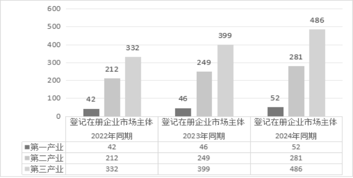 表2 2022-2024年同期登记在册企业产业分布情况表(户)