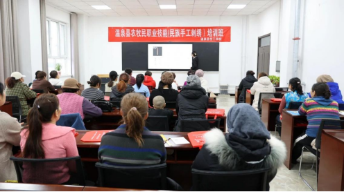 12月4日,温泉县技工学校举办农牧民实用技能(民族手工刺绣)培训班在温泉县技工学校正式开班。此次培训为期20天,辖区内共40余名妇女参加培训,课程内容包含裁剪、手工刺绣技法及绘图、色彩搭配等理论和实操等专业课程。