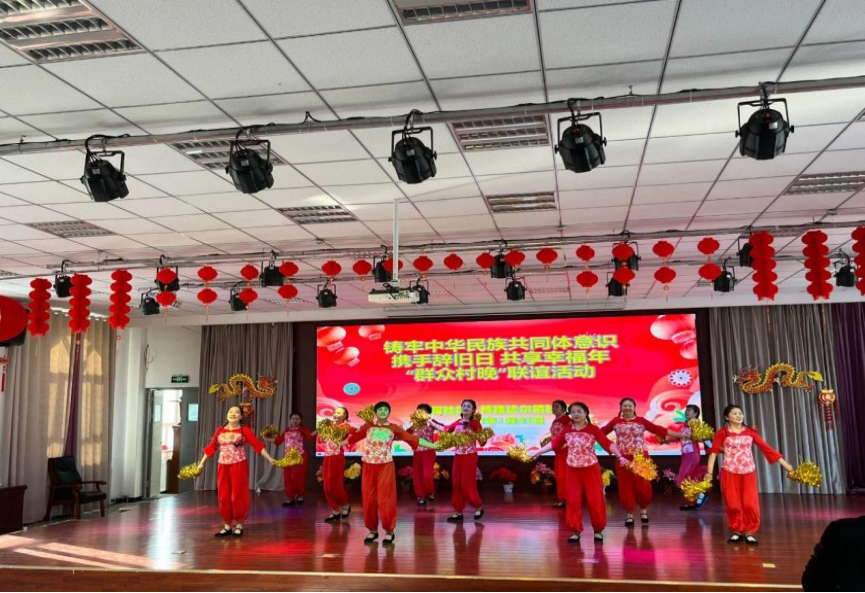 为进一步增强铸牢中华民族共同体意识,搭建形式多样的群众文化活动平台。1月23日下午,博格达尔镇幸福社区党支部与包联单位温泉县党委组织部、县团委、博格达尔镇社工站在社区“石榴籽家园”一同举办了“铸牢中华民族共同体意识·携手辞旧日 共享幸福年”群众村晚联谊活动。