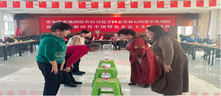 宣讲结束后,社区还组织大家开展了一系列趣味互动游戏,活动现场气氛热烈,欢声笑语此起彼伏,游戏过程中既展现了妇女个人魅力,又体现出了大家团结协作的精神,让妇女群众释放压力的同时,感受愉快的节日氛围。