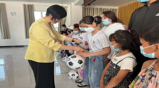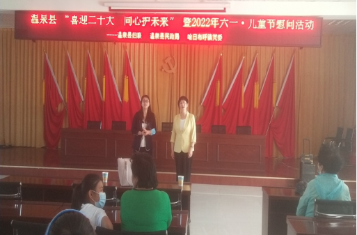 5月28日,在“六一”国际儿童节来临之际,温泉县妇联联合县民政局、哈日布呼镇在哈日布呼镇呼都格村开展“喜迎二十大 同心护未来”六一儿童节慰问活动。