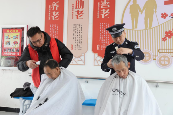 为让老人们感受到更多的关怀与温暖,民警和志愿者们还准备了一场“义务理发”活动。他们化身理发师,手持剪刀,耐心细致地为老人们修剪头发。寓意着“剃龙头、换新颜”,老人们看着自己焕然一新的形象,笑得合不拢嘴,连连向民警们表示感谢。