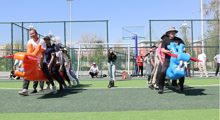 在哈日布呼镇足球场,十二支由村(社区)、派出所组成的队伍整装待发,准备进行 “旱地赛龙舟” 比赛。队员们身跨充气龙舟,随着裁判一声令下,三组队伍同时发力,喊着口号向前冲刺。不同于传统赛龙舟,旱地龙舟更考验团队协作能力,队员们步伐一致、口号响亮,场边观众的加油声此起彼伏,将活动推向了高潮。