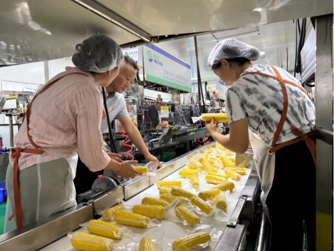 今年,鲜食玉米产业链还玩出了“新花样”——新增了玉米粒生产线,让玉米不仅能煮着吃,还能变身即食沙拉、玉米汁,甚至开袋直接当零食。通过产业链延伸,鲜食玉米的附加值得到了提升,带来了更多收益。
