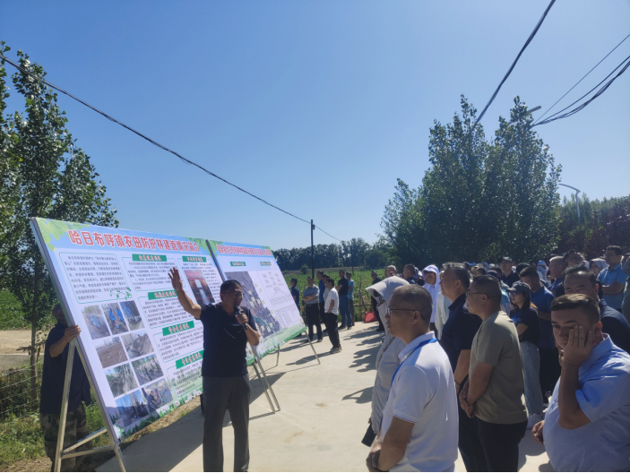镇人大主席丛永春在镇塔克勒格哈日莫敦村农田防护林示范点,详细介绍了防护林的规划布局、树种选择、建设规模以及在防风固沙、保持水土、改善农田生态环境等方面发挥的作用。学员们认真聆听讲解,不时驻足观察林木生长情况,并就建设技术、管护措施等问题现场展开热烈讨论。现场互动频繁。