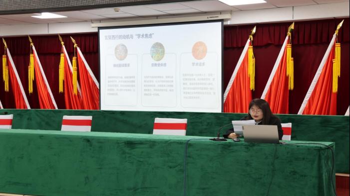 吴晓芸老师深入解读了习近平总书记给新疆的回信,解读回信的重要意义与深刻内涵。总书记的回信不仅是对新疆发展的关怀与指导,更是对这片土地上人民的深切牵挂,为新疆的发展指明方向,成为激励新疆各族人民奋进的强大动力,体现出党和国家对新疆的高度重视以及推动其稳定繁荣的坚定决心。宋雨彤老师生动再现库尔班大叔的传奇经历。库尔班大叔从旧社会的苦难中走来,在新中国成立后,怀着对党的无限感恩,一心想要去北京看望毛主席,他的故事成为爱党爱国的生动诠释。这种精神在其家族中代代相传,激励着无数新疆人民,也深刻影响着新疆社会的发展,成为民族团结与奋进的精神象征。刘欣澄老师则介绍了一场美食与文化交融的盛宴。通过对新疆特色美食的介绍,展现了丝绸之路带来的饮食文化交流。馕、手抓饭、烤羊肉串等美食背后,是不同民族、不同地域文化的碰撞与融合,见证了丝绸之路的繁荣与文化传播。迪娜·尼斯别克老师以玄奘西行为切入点,讲述了玄奘西行取经,途经新疆,其经历体现了丝绸之路在文化交流中的重要地位,也反映出历史长河中形成的“你中有我、我中有你”的文化格局,彰显了中华民族多元一体的发展历程。听众们聚精会神,有的拿起手机拍下幻灯片的精美图片;有的认真做起笔记,记录下库尔班大叔的感人故事,以及他对党的无限热爱和对祖国的深深眷恋。宣讲员们的精彩讲述,让听众们对新疆有了更全面、更深入地认识。