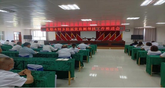 7月21日,扎勒木特乡召开防返贫监测帮扶工作推进会,乡党委书记山巧特主持,乡机关全体干部及各村队党支部书记、专干参加。