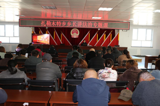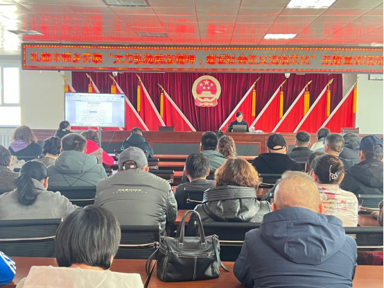 图为:扎乡以宪法为主题,乡党委书记“带头讲法”主题讲座现场。