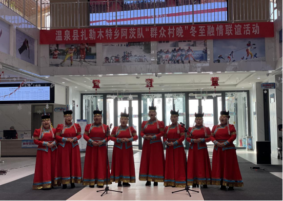 为深入贯彻落实习近平总书记8月26日在听取自治区党委和政府、兵团工作汇报时的重要讲话精神,2023年12月20日以铸牢中华民族共同体意识为主线,扎勒木特乡阿茨队包联单位温泉县人力资源和社会保障局及村“两委”在温泉县越野滑雪场举办“温泉县扎勒木特乡阿茨队群众村晚冬至融情联谊活动”。