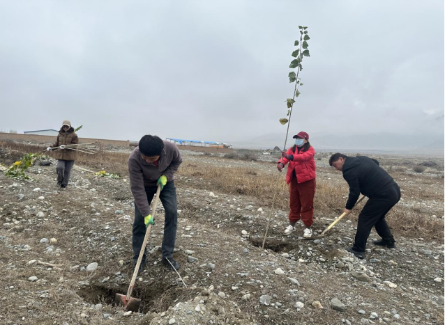 温泉县扎勒木特乡机关干部积极开展秋季补植补造植树活动