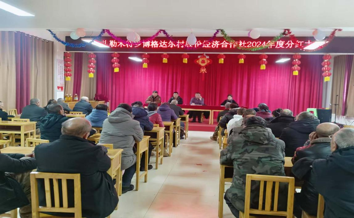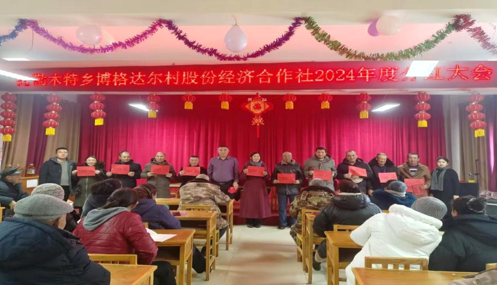 12月27日,温泉县扎勒木特乡博格达尔村股份经济合作社举办了年度分红大会,旨在巩固拓展脱贫攻坚成果,与乡村振兴有效衔接,进一步深化农村产权制度改革,充分发挥党建引领基层治理作用,激发村民内生动力,推动村集体经济发展壮大。