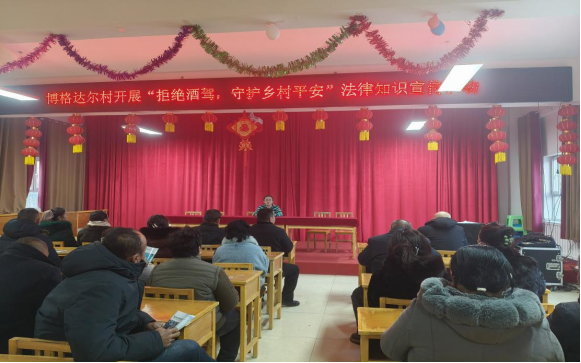 为进一步加强交通安全宣传教育,增强村民的道路交通安全意识,有效预防和减少因危险驾驶行为引发的交通事故,2月17日,温泉县扎勒木特乡博格达尔村组织全体村民开展以“拒绝酒驾守护乡村平安”为主题的宣讲活动。