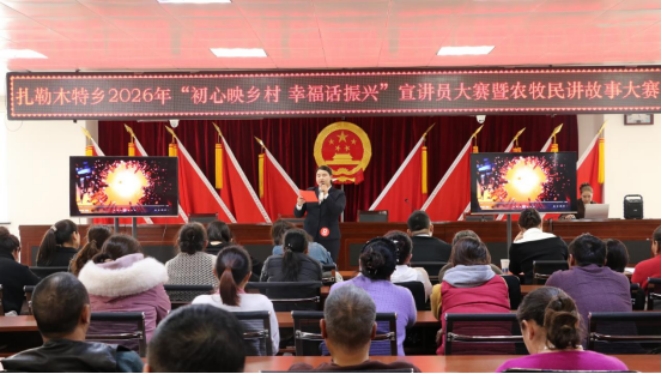 1月22日下午,扎勒木特乡“初心映乡村 幸福话振兴”宣讲员大赛暨农牧民讲故事大赛在乡政府隆重举行,活动以党的二十届四中全会精神为主线,全面展示扎勒木特乡乡村振兴丰硕成果与干群昂扬奋进精神风貌,凝聚文化赋能乡村发展的强大动力。
