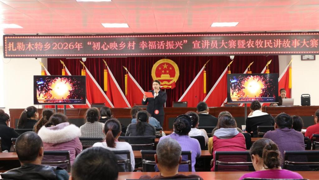 为深入学习宣传贯彻党的创新理论,全面展示扎勒木特乡乡村振兴成果与干群精神风貌,凝聚文化赋能乡村发展的强大动力,1月22日下午,扎勒木特乡“初心映乡村 幸福话振兴”宣讲员大赛暨农牧民讲故事大赛在乡政府隆重举行。