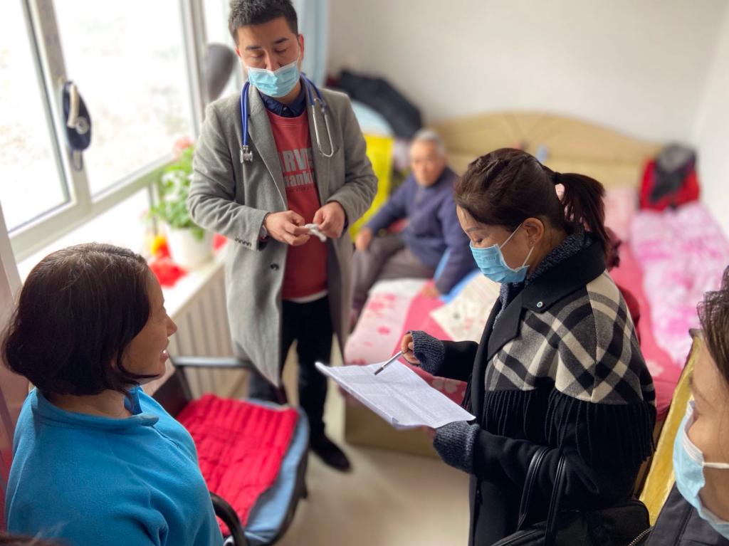 贴心的“敲门行动”。考虑到老年人行动不便、基础疾病多、身体条件差等情况,安格里格镇奇齐尔根布呼村志愿者马金山与温泉县卫计委、人民医院、镇卫生院组成“敲门行动”的人员一道上门,为长期卧床、行动不便的老人们做贴心体检与养护建议,确定满足接种条件后为的老人们接种新冠疫苗。