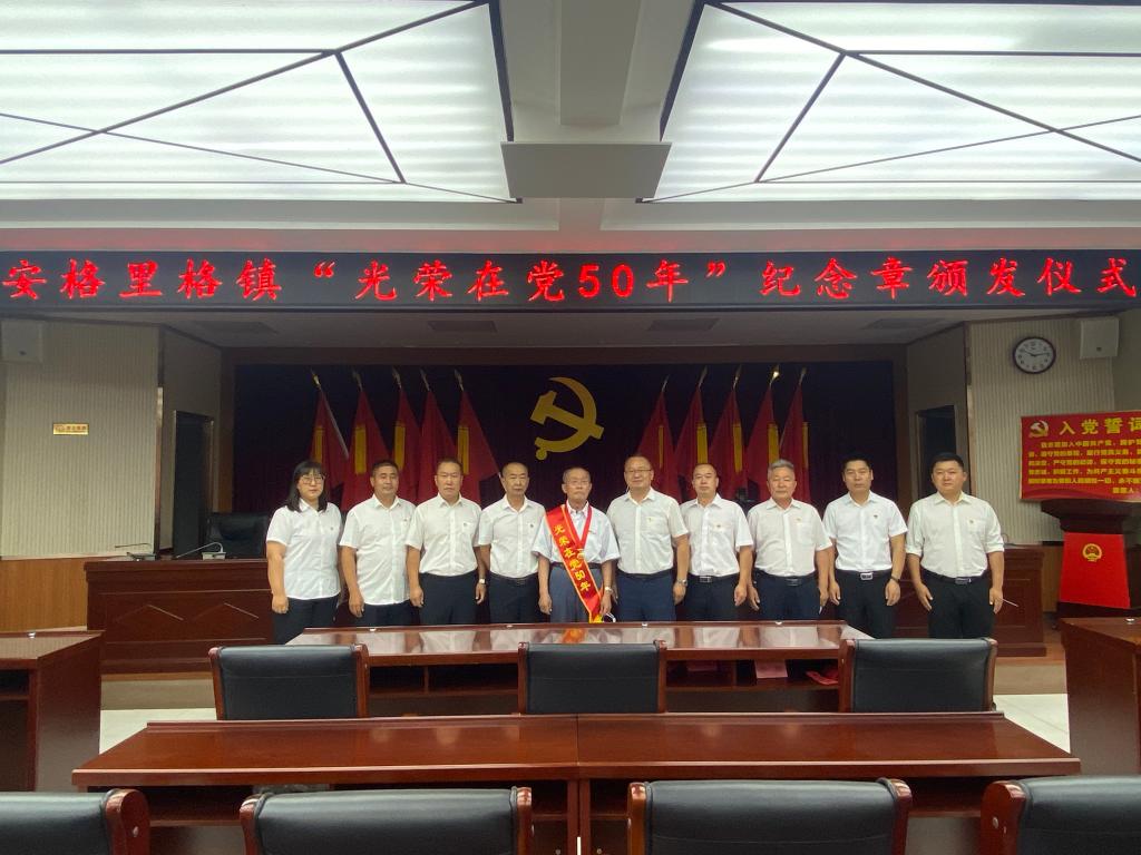 为隆重庆祝中国共产党成立101周年,喜迎党的二十大召开,全面回顾中国共产党走过的光辉历程,激励全镇广大党员传承老一辈共产党员的光荣传统和优良作风,彰显党的强大凝聚力和号召力,温泉县安格里格镇举行“光荣在党50年”纪念章颁发仪式。