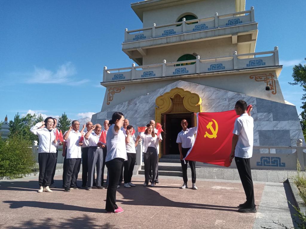 “此次两个支部联合交流,共建党支部活动,一同参观,大家与党旗合影留念,每名党员时刻牢记一名共产党员的使命和任务,注重党性修养,增强党员意识,不忘初心,牢记使命,为共产主义奉献终身!”奇齐尔根布呼村党支部书记马金山说。