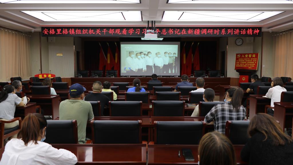 7月15日,安格里格镇组织全体机关干部,党员观看学习习近平赴新疆考察调研新疆工作时的重要讲话精神。通过手机、电视、电脑准时收听观看《新闻联播》,观看着总书记对新疆各族儿女的关怀与牵挂;倾听着总书记对新疆人民的殷切期望和对新疆经济社会高质量发展的科学指导。