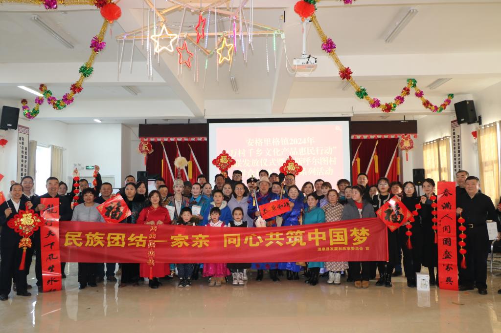 精彩刺激的体育赛事活动过后,还开展了文艺展演和送春联活动。托布秀尔弹奏、独舞、大合唱、民歌等11个节目悉数登台,轮番上演,优美的舞蹈、嘹亮的歌声……现场观众纷纷拿出手机记录精彩瞬间。让群众从“看官”变身“演员”,让各族农牧民展示自我,在家门口享受文化盛宴。 参与主持的托斯呼尔图村村民郭木巴特说:“群众村晚文体系列活动,以群众为主体,大家唱、大家跳、大家演、大家赛,充分激发群众的创作和表演热情,现场人头攒动,欢声笑语不断,浓浓的年味扑面而来!”