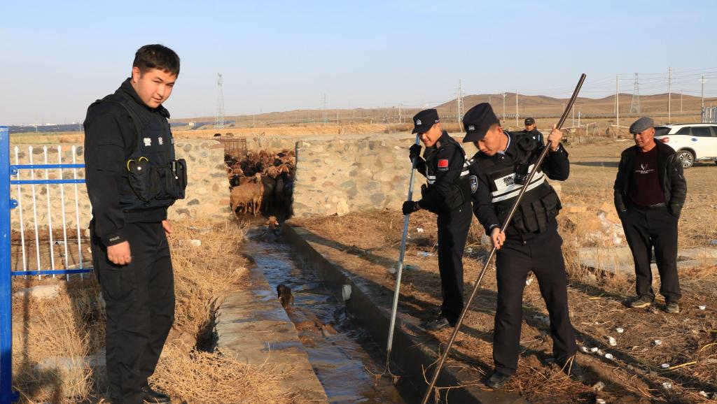 近日,安格里格镇本布图村上演了一幕温暖人心的场景:在民警的全力协助下,村民们顺利完成了一场规模达8000余只的羊群集中药浴行动。这场看似普通的畜牧防疫工作,不仅守护了牧民的“致富羊”,更成为乡村振兴战略下警民共建、民族团结的生动缩影。