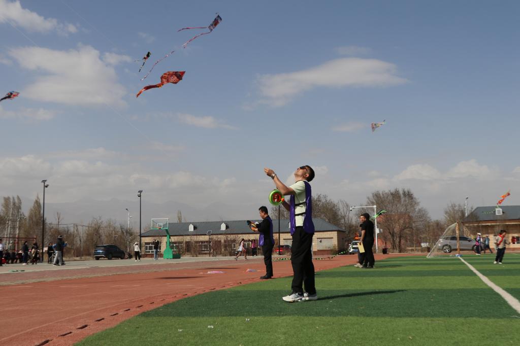 随着比赛正式开始,一只只承载着民族团结心愿与美好祝福的风筝扶摇直上,在蓝天中舒展身姿、竞相翱翔,与春日美景交相辉映。孩子们在草地上肆意奔跑、嬉笑打闹,远离电子产品,拥抱春日自然,清脆的笑声随风飘荡,成为这个春天最动听的旋律。“风筝比赛太好玩啦!看着风筝飞得高高的,我心里好开心呀!”安格里格中心小学学生马铭哲开心的说。