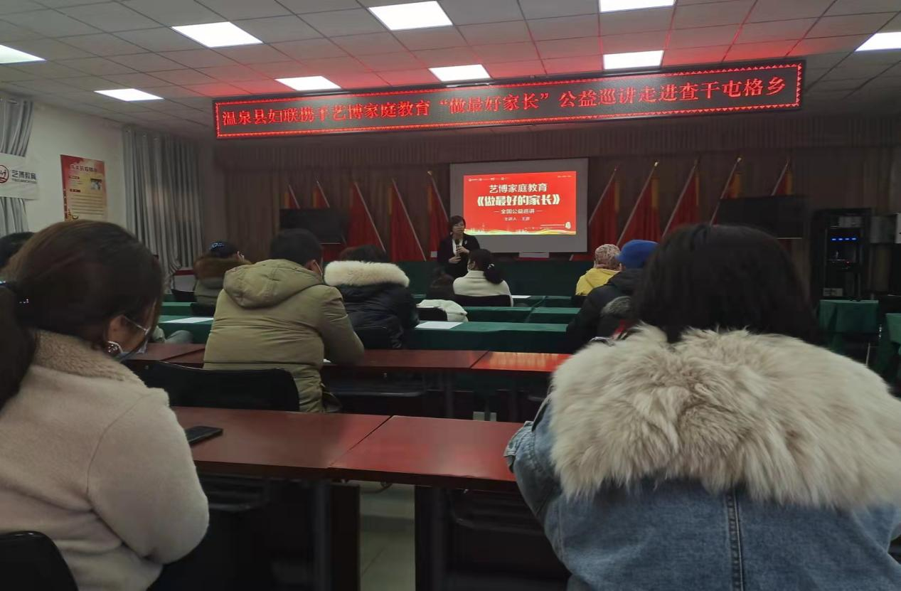 孩子是祖国的花朵,孩子是家庭的未来。为进一步提升家庭教育水平,为孩子营造健康向上、温馨幸福的成长环境,引导其树立正确的人生观、价值观和世界观。1月13日下午15:30,查干屯格乡妇结合《中华人民共和国家庭教育促进法》联特邀请艺博教育讲师讲师团讲师王彦、贾付清老师就“如何做最好的家长?”“孩子的现状与未来”、“心理营养”等方面开展了一场生动的家庭教育讲座。