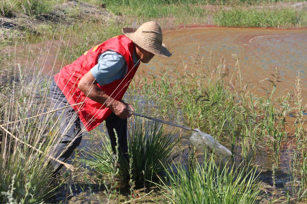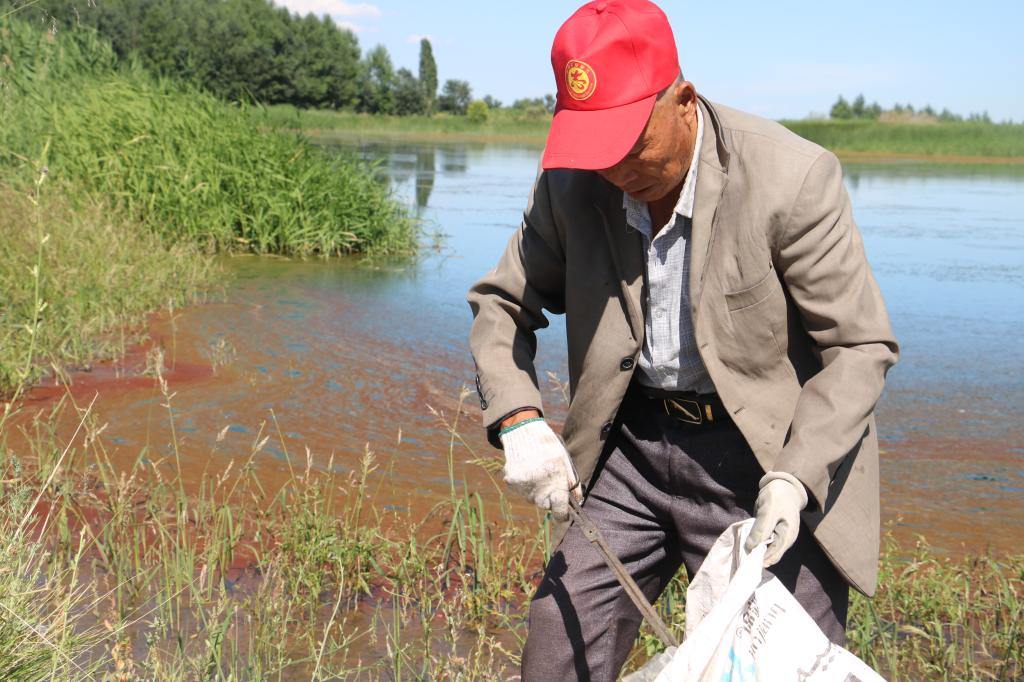 整治行动中,莫都停浩图呼尔村党员们身穿志愿者红马甲、红帽子,充分发扬不怕脏、不喊累的精神,纷纷下到河道里面捡拾和捞取各类塑料袋、饮料瓶等垃圾。其中,村干部和老党员更是发挥模范带头作用,顶着炎炎夏日进行了一下午的劳动,随着他们身影略过之处,河道和岸两垃圾肉眼可见的消失,野鸭湖的整体环境卫生也得到了极大地改善。