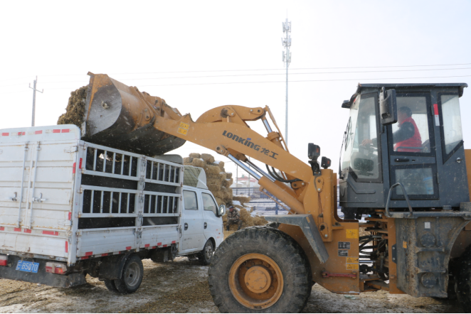 为解决饲草料短缺问题,呼斯塔村村委会组织专人提前进行了详细的规划和准备,并根据牧民的需求和草料的储备情况制定了合理的分配方案,通过铲车等机械设备实现了快速、准确的草料发放,确保每一位牧民都能得到及时草料。