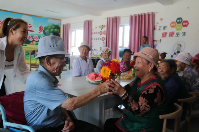 除了精彩的电影,活动的另一大亮点是为老人们准备的七夕节祝福鲜花。当一束束娇艳欲滴的鲜花被送到老人们手中时,他们的脸上洋溢着幸福的笑容。在温馨的氛围中,老人们互相赠送鲜花,并深情地说出祝福的话语。“亲爱的老伴,愿你的每一天都充满快乐和健康。”“谢谢你多年来的陪伴,愿我们一直这样幸福下去。”这些简单而又饱含深情的祝福,如同一股股暖流,在彼此心间流淌。