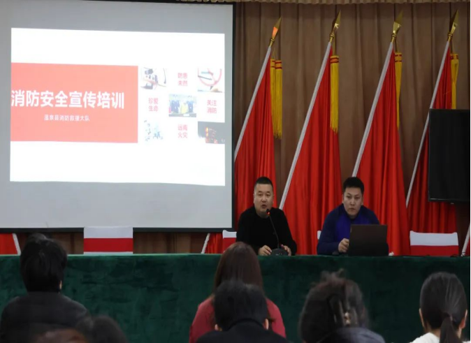 讲座中,来自温泉县消防大队的专业消防人员结合乡村实际情况,通过生动的案例、直观的图片和视频,详细讲解了火灾的成因、危害以及预防方法。重点介绍了家庭和公共场所常见的火灾隐患,如电线老化、电器使用不当、乱扔烟蒂等,并针对这些隐患提出了切实可行的整改建议。
