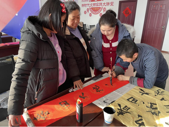 春节贴对联,是我国过年的传统习俗之一,烘托了新春喜庆和欢乐的氛围,寄托了对美好生活的向往,是中华传统文化的瑰宝。除夕即将来临,为营造欢乐、喜庆、祥和的中国年氛围,1月28日下午,塔秀乡别勒其尔村组织返乡大学生开展了—迎新春送对联活动,为居民写春联、送福字,送上新春的美好祝福。