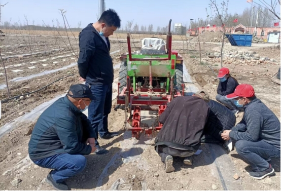 播种特色辣椒时头带小红帽的农机专业技术现场指导