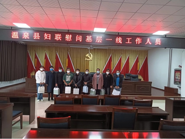 近日,温泉县妇联主席苗冬梅来到塔秀乡,亲切慰问不辞辛劳、连续奋战在乡镇街道村居防控一线的妇联干部,给她们送上了贴心的“暖心包”,感谢她们辛勤的付出和默默无闻的奉献,向她们送去组织的关怀和温暖。
