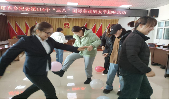 3月7日上午,塔秀乡计生协、塔秀乡妇联联合开展以“跟党奋进新征程 巾帼建功新时代”为主题的纪念第114个“三·八”国际劳动妇女节趣味活动,政府机关女职工、各村家庭健康指导员等50余人参与其中。