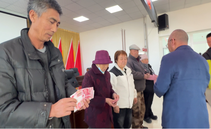 随后宣布了分红方案,并亲自为十位村民代表颁发了每人500元的现金分红。村民们脸上洋溢着喜悦的笑容,纷纷表示这次分红让他们切实感受到了认养项目带来的实惠。楚布勒达村的村民阿有希激动地说:“真的很感谢政府和企业给我们提供了这么好的机会,让我们能够通过认养牲畜增加收入,改善生活条件。”