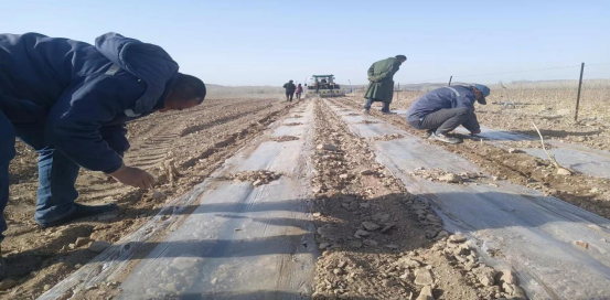 一年之计在于春,春耕时节催农人。此时,正是甜菜播种的好时节,呼和托哈种畜场抢抓农时,全力投入到春耕生产当中。4月3日在呼和托哈队的农田里,机声隆隆,三辆北斗导航播种机正在抢时播种甜菜,种植户王军跟机作业,监督机械压膜、覆土、下种、株行距等情况,博州糖厂也派来了技术员跟踪服务,现场进行技术指导确保甜菜的播种质量。现代机械化的种植与采收,既节省了时间又降低了成本,更可喜的是甜菜收购价格也在逐年增高,还有订单做保障,增产又增收,种植户积极性极大地提高。