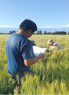 在县农业农村局、场农业办工作人员的陪同下,检测组深入田间地头,对冬、春小麦全面开展测产工作。在测产工作中,农技人员选取有代表性的小麦田进行测产。采集并记录小麦品种的亩穗数、株高、穗粒数等小麦性状主要参数数据,确保测产数据的客观性、真实性和准确性。