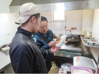 检查过程中,检查人员重点对后堂卫生、食材、工作人员健康状况,消防栓、灭火器、用电线路、石油液化气、煤炭使用等方面开展检查,针对消防栓堆放杂物、燃煤堆放不合理等问题现场指导整改,对灭火器临期问题提出整改意见督促商户整改。