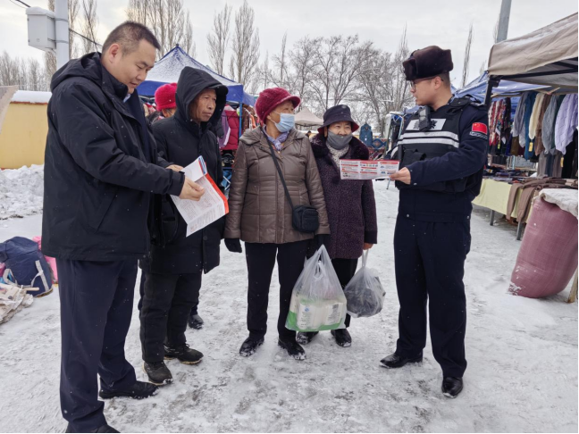 随后,场综治办、司法所、妇联、派出所等相关部门利用赶集日联合开展了宪法日宣传活动。活动中,相关部门通过现场面对面讲解以及派发有关宪法日宣传的活动材料等方式,向群众重点宣传宪法、新时代四大检察、生活中谨防电信诈骗遇到诈骗该如何处理等内容,为群众讲解公民的基本权利与义务等与群众息息相关的宪法知识,并现场解答群众有关法律方面的问题。