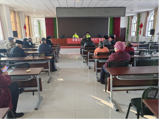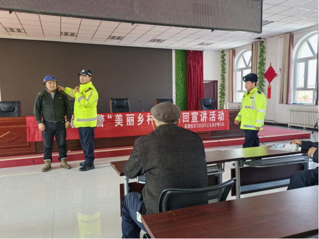 为进一步预防和减少农村道路交通事故的发生,提升农村道路交通参与者的文明交通安全意识,2月17日,温泉县交警大队联合呼和托哈种畜场,深入呼和托哈队,开展“美丽乡村行”巡回宣讲活动,向农牧民群众普及道路交通安全知识,全力筑牢农村道路交通安全防线。