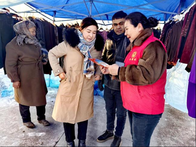 当天,呼和托哈种畜场大集,志愿者用通俗易懂的语言向妇女们解读了《中华人民共和国民法典》婚姻家庭篇、《中华人民共和国反家庭暴力法》《中华人民共和国未成年人保护法》《中华人民共和国妇女权益保障法》等相关法律知识,引导和教育妇女增强法律意识,鼓励她们运用法律武器,捍卫自身合法权益。并结合生活中常见的邻里纠纷、家庭矛盾等问题,现场提供法律咨询服务,让妇女群众切实感受到法治的温暖与力量,增强了妇女群众的法治获得感。