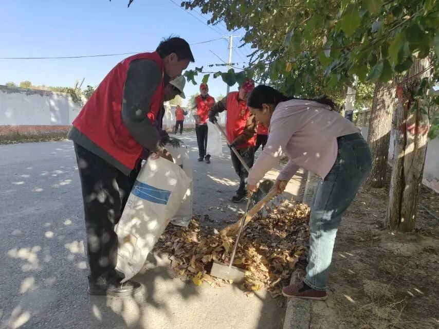 在包联村队的主干道上,机关干部们干劲满满。“大家加把劲,把路面两侧的落叶和白色垃圾都清理干净!” 一名干部一边拿着扫帚清扫,一边招呼着同事。不远处,十多名志愿者也手持扫帚、垃圾袋,沿着主干道两侧,将藏在路边草丛里的白色垃圾、散落在路面的落叶一一清理干净,清扫过程细致认真。