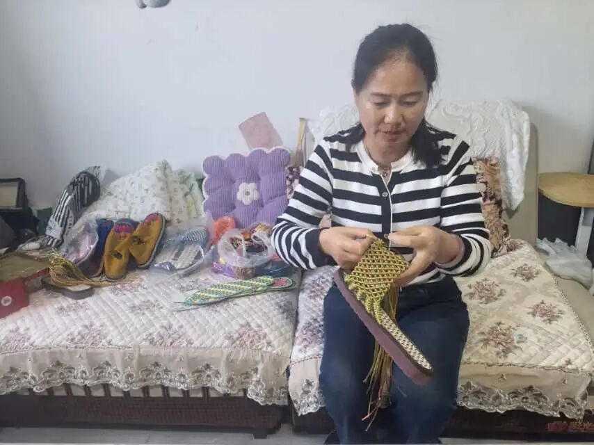 赵华燕的手工技艺,是从小跟着家里长辈耳濡目染学来的。“小时候看奶奶、妈妈纳鞋底、绣花样,觉得特别神奇,就跟着一点点摸索。”凭着这份热爱与韧劲,她从简单的针法练习起步,慢慢将十字绣的精致、毛线编织的灵动融入手工创作中。为了让拖鞋既好看又耐穿,她反复琢磨鞋底材质的选择,尝试改良编织针法,把常见的格桑花、云纹等元素化作鞋面上的吉祥纹样,让每一双拖鞋都带着独特的地域韵味。