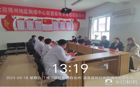 2023年3月18日上午,博州胸痛中心联盟验收专家组预检组组长陈平一行5人莅临我院进行胸痛救治单元现场验收指导工作。参加此次评审会议的单位有哈日布呼镇卫生院院领导班子、相关负责人及部分医务人员,温泉县蒙医医院和八十八团医院共同观摩学习。