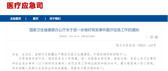 国家卫健委办公厅关于进一步做好突发事件医疗应急工作的通知