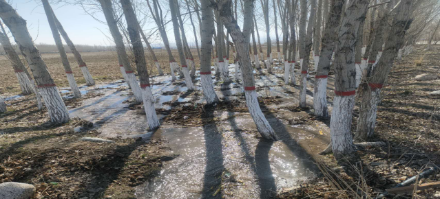 灌溉前期各乡镇(场)提前规划,对辖区内各片林区灌溉渠道进行全面排查,及时清理堵塞渠道,保证灌溉渠道的疏通,为顺利灌溉提供有力保障。紧抓气温回升期,巧用冰雪融水灌溉林木。在春季气温逐渐升高的过程中,低温融水缓慢渗入土壤,不仅能有效调节土壤温度,防止土壤过早升温引发病虫害滋生,还能刺激根系生长,促使其扎根更深,增强树木应对未来干旱、大风等极端天气的能力。