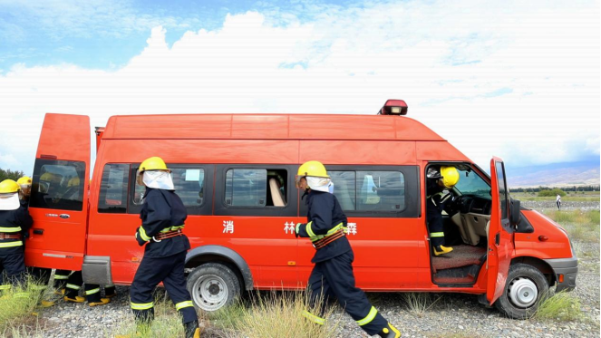 温泉县森林防火指挥部接到火情报告后,迅速启动应急预案,组织林草局森林草原防火半专业化队伍、消防救援大队等多部门赶赴现场进行扑救。兵团第五师87团也立即组织应急力量赶赴兵地交界区域待命。各参演单位按预案要求,迅速完成队伍集结、物资调配、现场勘察等工作,有序开展灭火行动。