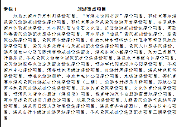 旅游产业蓬勃发展。举全县之力打造旅游支柱产业,不断释放稳定红利,引领一条增收致富路。旅游产业蓬勃发展,旅游基础设施建设进一步夯实,旅游产业呈现“业态丰富、要素健全”可喜局面,成功创建为第二批国家全域旅游示范区。进一步夯实旅游基础设施建设,投资40亿元,实施旅游项目181个,实施民俗运动场、26座旅游厕所、G219进城段绿化、湿地景观提升、河谷林休闲步道、鄂托克塞尔景区建设、孟克特街改造、湿地保护与修复提质改造、圣泉景区建设项目—道路建设工程、生态休闲停车场建设、木栈道景观、河谷林建设、博格达山历史文化浮雕工程等一系列生态和景观融合建设工程。“四馆一中心”投入使用,社会反响强烈。温泉水引入县城为招商引资打下坚实基础,央企中林集团参股赛湖渔业、酒店民宿、电影院等一批项目落地。扎勒木特乡博格达尔村被命名全国第三批少数民族特色村寨。赛湖牌高白鲑休闲食品入围“新疆礼物”名录。“浴”文化展现活力温泉,多“馆”齐下迸发魅力温泉,流光溢彩“秀”出童话温泉,低空飞行饱览“醉”美温泉,有效拉长游客在温时间。温泉通用机场各项前期工作进展顺利。环赛里木湖自行车赛、自治区青少年篮球赛、河谷林半程马拉松、香紫苏文化旅游节等系列活动常态化开展,芒果TV《野生厨房》聚焦温泉,关注度超1亿人次。“十三五”期间累计接待游客811.8万人次、旅游总消费72.8亿元,分别是“十二五”3.1倍、2.1倍。