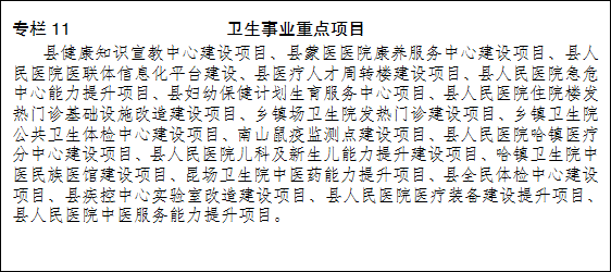 加强重大传染病防控。推进疾病预防控制体系改革,强化监测预警、风险评估、流行病学调查、检验检测、应急处置、能力建设,改善疾控基础设施条件,提高应对突发公共卫生事件能力。继续实施扩大国家免疫规划,适龄儿童国家免疫规划疫苗接种率维持在较高水平。加强艾滋病检测、抗病毒治疗和随访管理,全面预防艾滋病母婴传播。加强耐多药肺结核筛查和监测,规范肺结核诊疗管理。积极应对新冠肺炎、流感、手足口病、麻疹等重点传染病疫情。继续巩固包虫病、布鲁氏杆菌病等地方病防控成果。建设南山鼠疫监测点,加强鼠疫监测和防控。